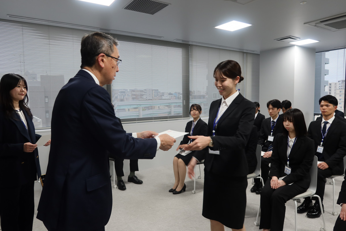 2026年4月1日(水)、西部ガスグループ入社式がガスホースにて執り行われ、当社には新たに16名の新入社員が入社いたしました。